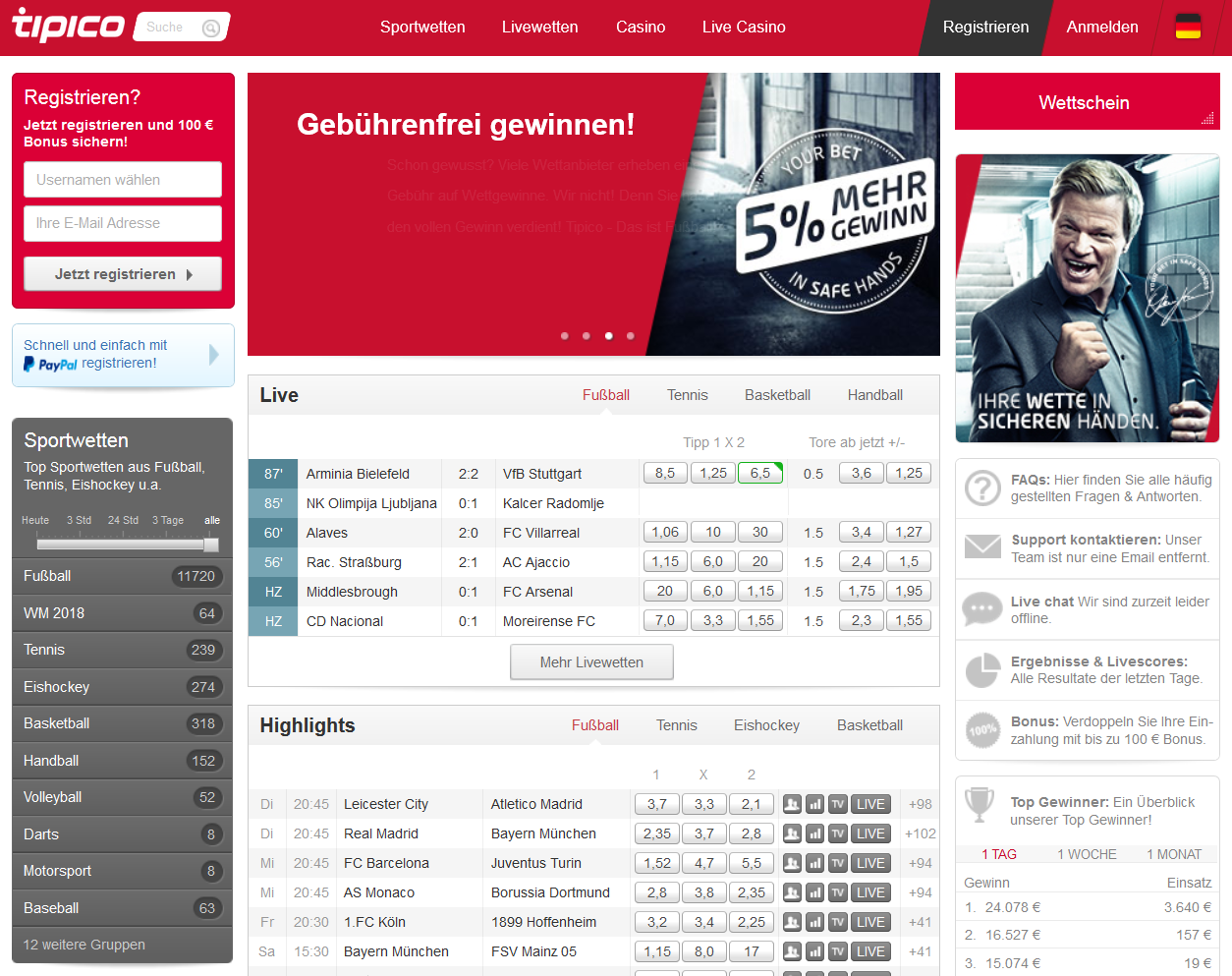 - Hervorragender Kundenservice: Unser Tipico Kundenservice ist rund um die Uhr per Live-Chat oder E-Mail erreichbar und hilft Ihnen bei Fragen und Problemen gerne weiter.